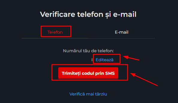 După ce te-ai asigurat că numărul este corect apasă “Trimite codul prin SMS”.