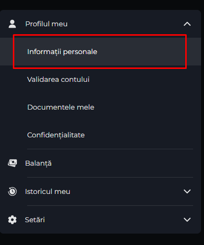 Selectează "Informații Personale"