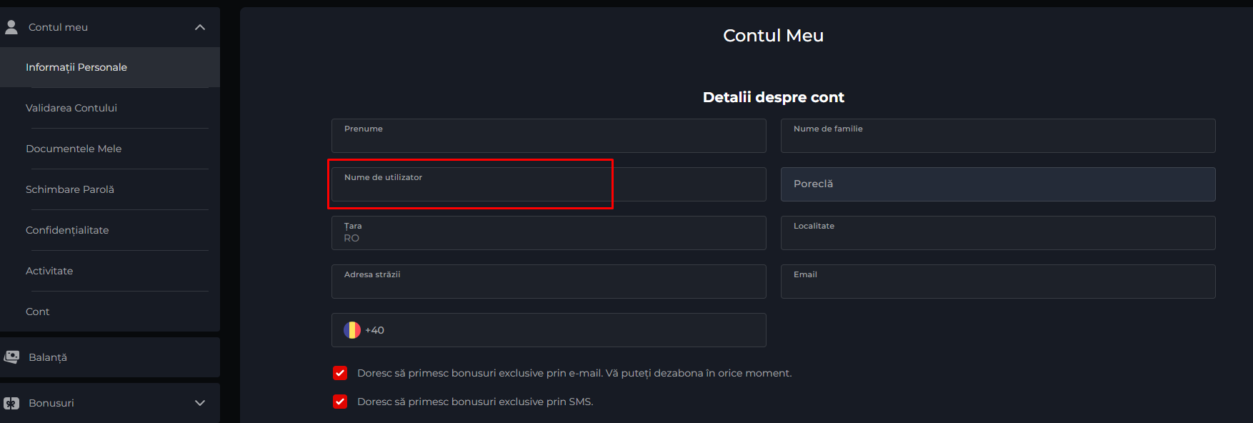 Se deschide pagina "Profilul meu" unde vei găsi Nume de utilizator.