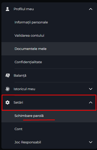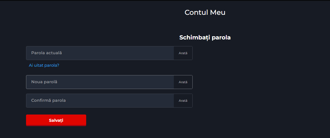 Îți poți schimba parola simplu și rapid direct pe site, în secțiunea "Meniu" > "Setări" > "Schimbare Parolă".